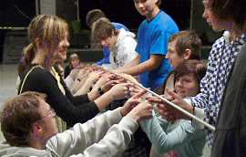 Rudolstadt. Junge, sehr junge und sogar ältere Menschen griffen sich ihren Klassiker, führten und sagten ihn auf, und stellten das Ganze unters Motto "Helden". Diesmal war die Leidenschaft dran. Im Rudolstädter Theater hatten sich freie Gruppen aus den Schillerstädten versammelt. Das "Fest der Leidenschaften" enthielt 1 Grußansprache, 1 moderierenden Intendanten, 3 Teile im Theaterhaus, 1 Pause, 1 Spaziergang über die Saale in den nahe liegenden Park und 1 Freiluftaufführung mit nicht gezählten Feuerwerkskörpern, und amüsierten Zuschauern. Hinzu kamen 1 Gesamtleiter, der Rudolstädter Schauspieldramaturg Matthias Spaniel, wunderbares Wetter und auskömmliche Verpflegung. Auf der Bühne also zunächst Jena mit der "Bewegungsküche e.V.", eine noch durch Harald Seime angeregte Tanz- und Pantomimetruppe von Rang und mit Einfällen. Gewiss, die hätte man auch für Goethe oder Seume nutzen können, doch für die Gruppen vom Angergymnasium, der "Aktion Wandlungswelten", der Freien Integrativen GGS STEIN MAL EINS und dem Studententheater Dramathea boten sie den idealen Teppich, wie man gern sagt. Schüler und Behinderte, Sozialarbeiter und Studierende zeigten jeder für sich und alle zusammen, was sie mit Schiller anfangen können: den "Handschuh" und die "Bürgschaft" in "demokratischen Kurzfassungen" (Steffen Mensching), Theater mit Leidenschaft und Einfällen. Meiningen bot "Schiller statt Chiller". Zwei Schulen und "Projekte M e. V" rappten Texte, fragten in Video-Einspielen die Bevölkerung, was sie von "Dr. Ritter", dem Decknamen Schillers, wussten. Das Saalpublikum musste Quizfragen beantworten und gemeinsam die "Hoffnung" rappen: